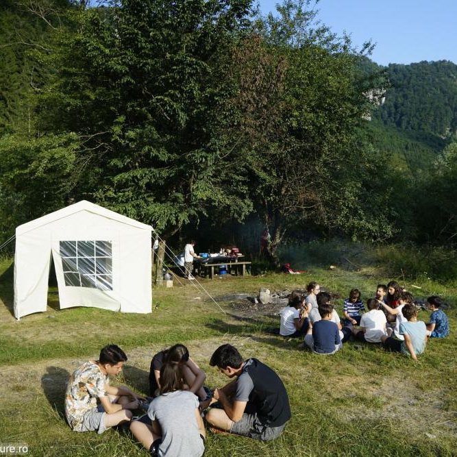 Observații: copiii vor fi impartiti in grupe in functie de pregatirea si rezistenta lor. Fiecare grupa va merge insotita de un ghid. Masa va fi gatita in cortul nostru de bucatarie din poiana.